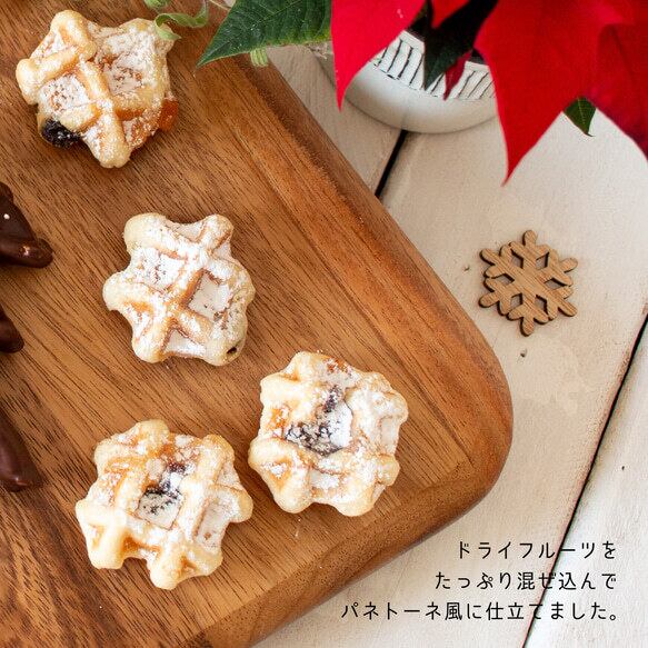 ドライフルーツをたっぷり混ぜ込んで、粉砂糖で仕上げたパネトーネ風ワッフルです。