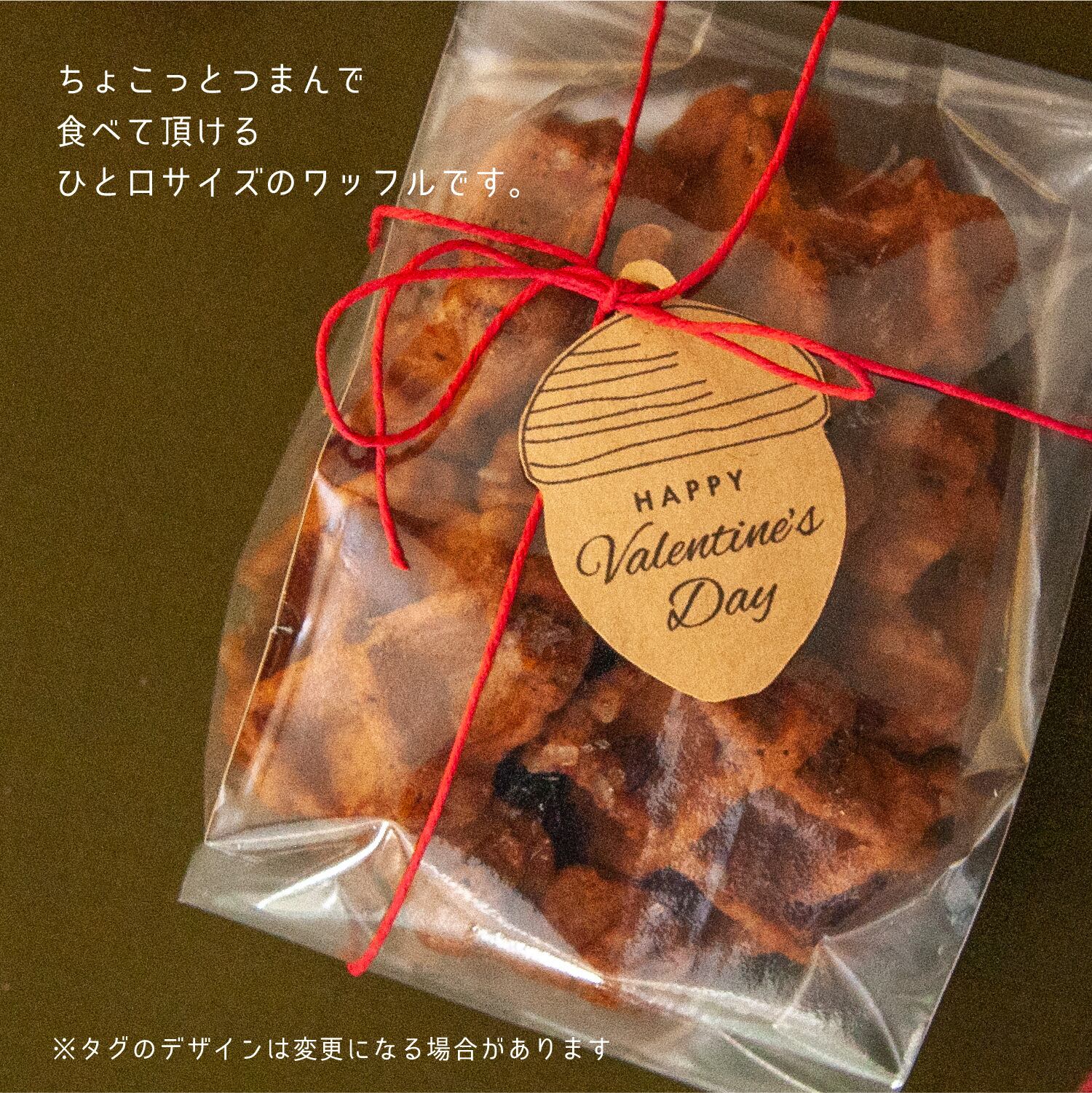 たっぷりチョコチップ&ココア生地のひとくちわっふるに、バレンタインデザインのタグを付けた特別仕様です。
