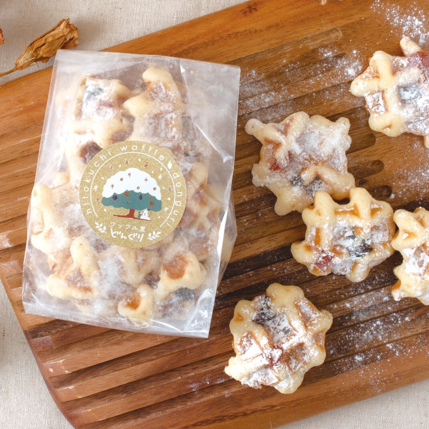 クリスマスにイタリアで食べられるお菓子”パネトーネ”をイメージして作った「パネトーネ風ワッフル」には、ドライフルーツと粉雪のようなお砂糖がたっぷり。